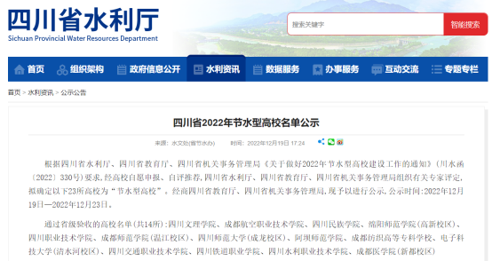 2022年我公司依然深扎節水領域,與成都市節約用水監管事務中心、電子科技大學、四川師范大學、成都師范學院、成都醫學院、四川省八一康復中心等企事業單位及高校展開合作,成功提供節水核查、水平衡測試、節水型高校/單位創建、節能平臺建設等專業服務,各單位節水效益明顯,并得到相關部門肯定。